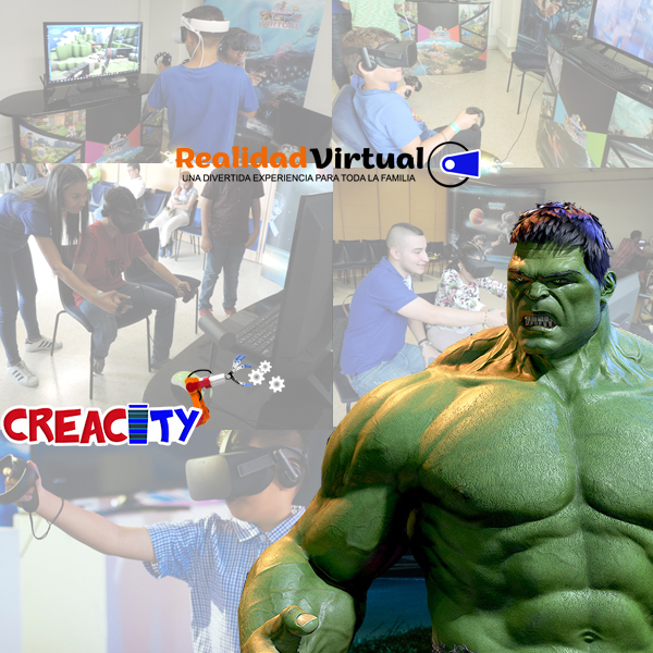 Realidad Virtual: El evento de realidad virtual es una zona con tecnología de punta, a través de las gafas de realidad virtual mas importantes del mundo, que le permiten sumergirse en un entorno de escenarios y objetos, para vivir una gran experiencia; Se un superhéroe de marvel, escala la montaña mas alta del mundo, bucea en lo profundo del mar, explora el espacio, sorpréndete con dinosaurios, grita subiéndote a la montaña rusa, o juega y vive el futuro que te hace reír y pasar un gran rato en familia.